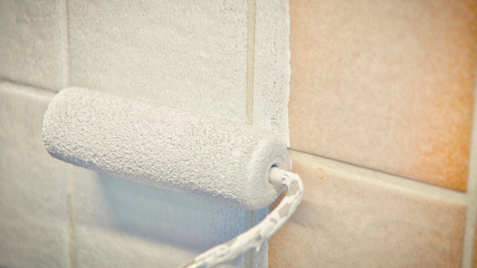 To improve adhesion on smooth tiles, sand first, says Larkins, “A fine grit sandpaper grade is best for this (between 120 and 220 grit), and then vacuum the area to remove dust.”