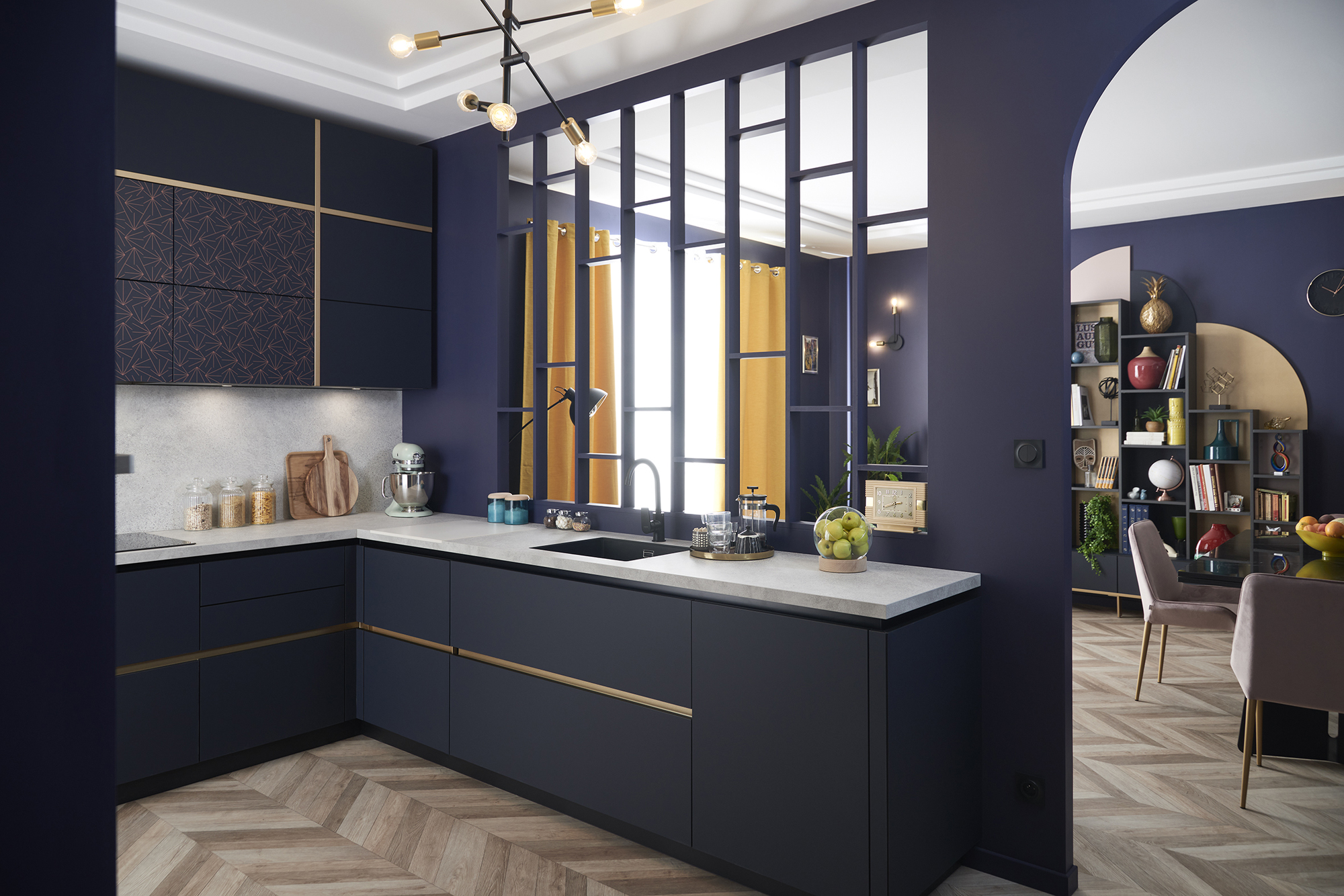 "Integrating brass details throughout the room ties everything together, and this doesn’t necessarily have to be handles or taps, lighting is the perfect way to introduce those metallic touches into the kitchen. Whether it’s hanging gorgeous brass pendants above your breakfast bar or dotting rechargeable lamps on your kitchen shelving.