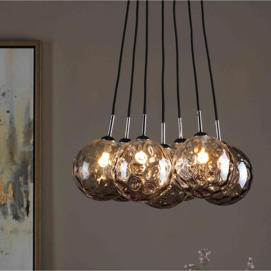 Try this Mahood 3-Light Twisted Ribbed Glass Bubble Globe Chandelier Sputnik Ceiling Light from Wayfair if the bubble trend is one you want to try.