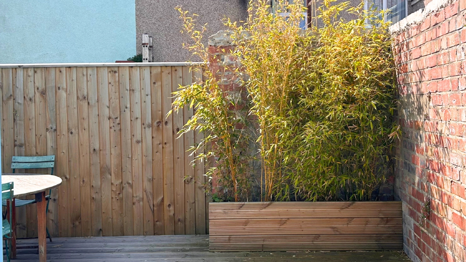 When it came to updating his garden design, my partner found himself with a lot of spare decking that didn’t get used, so he decided to turn it into a bamboo planter – saving himself the cost of buying one, as well as a trip to the recycling centre.