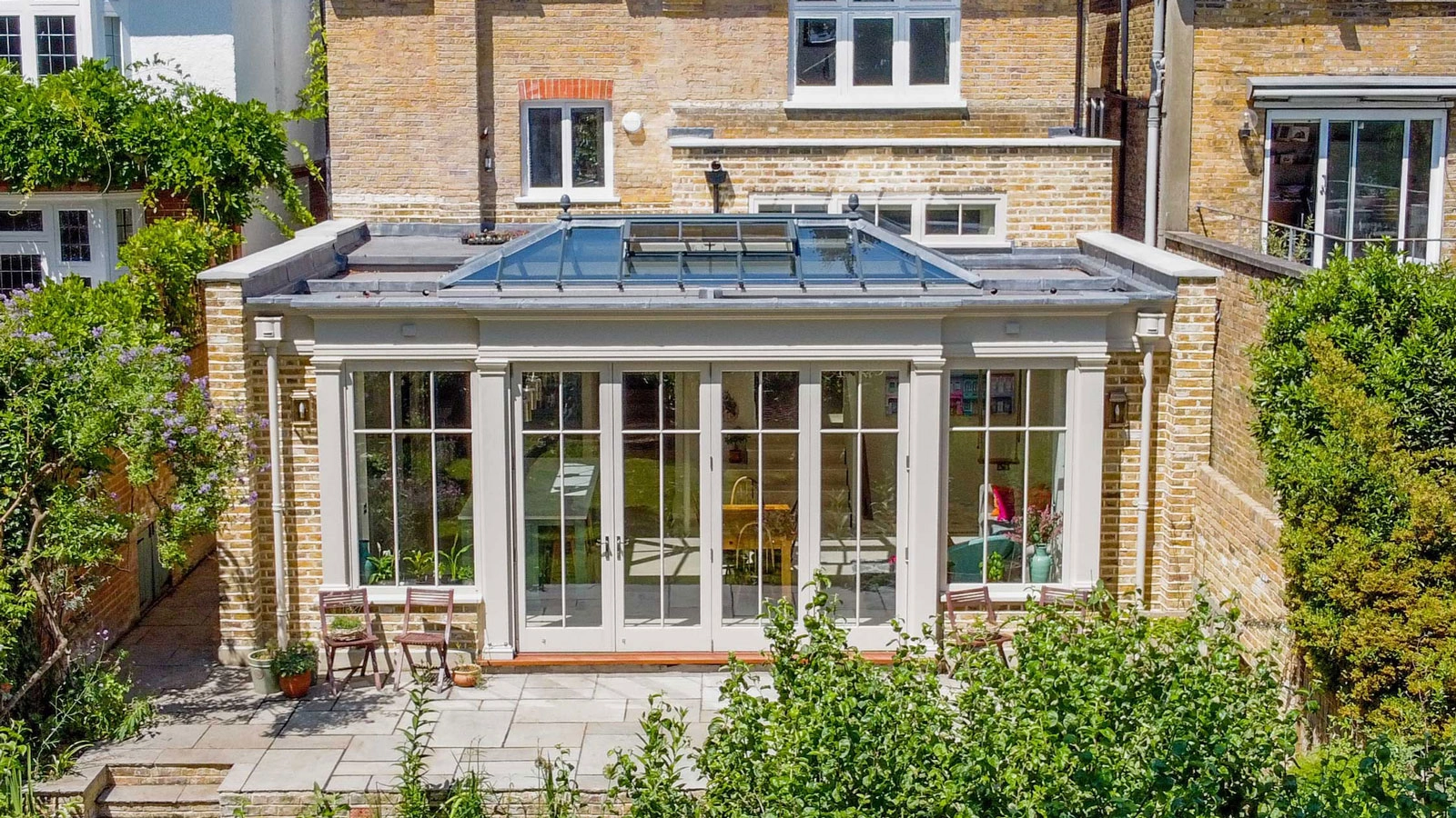 "An orangery sits somewhere between a conservatory and a traditional brick extension," explains Michael Arrowsmith. "It usually has more solid elements such as brick pillars and a partial solid roof rather than a fully glazed roof. Because of that construction, an orangery often feels more like a permanent room in the house while still bringing in a lot of light from the lantern and large windows – whereas a conservatory can sometimes feel like an extension of the garden.