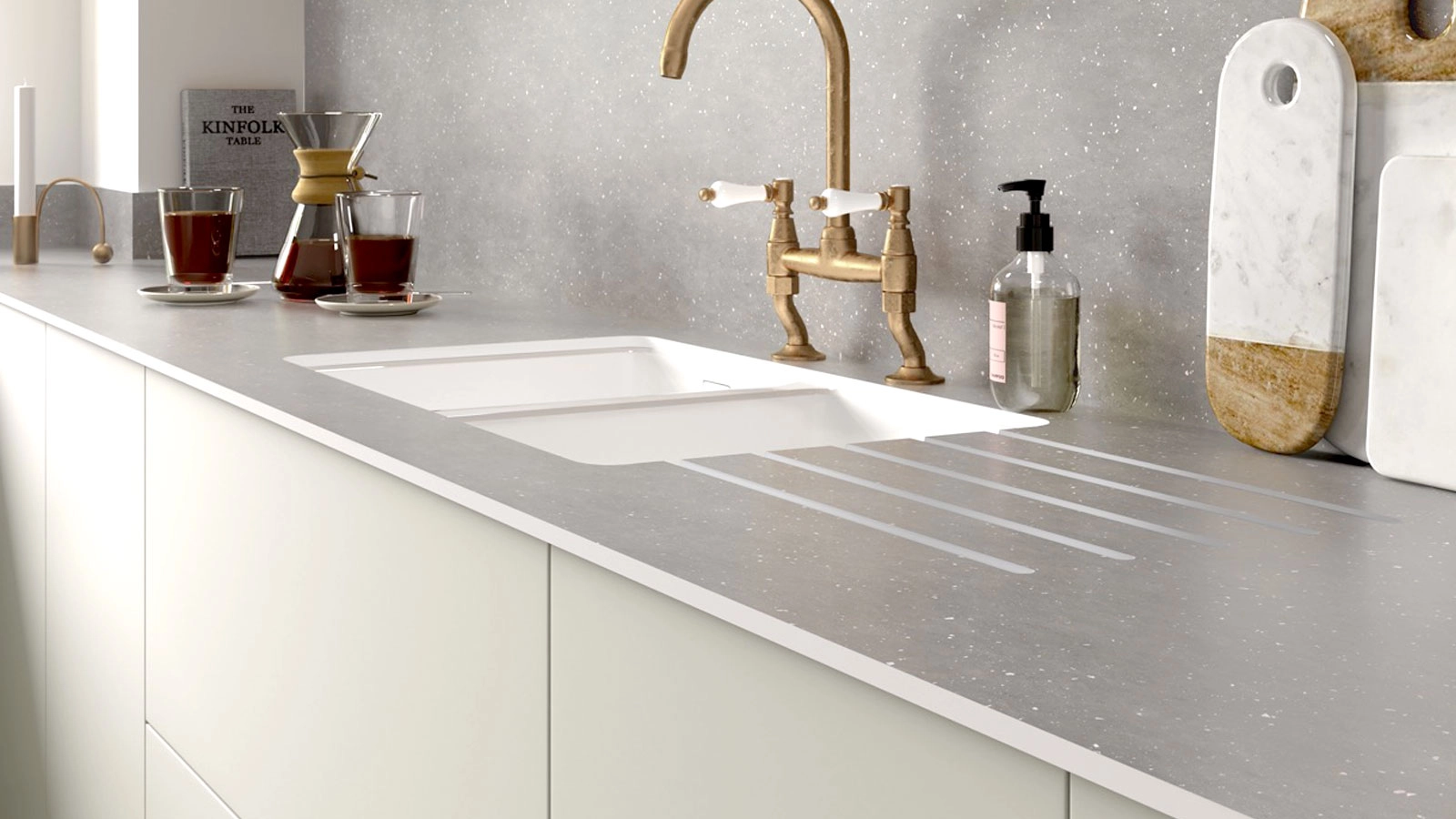 Frankling explains how they differ from standard laminate worktops: “A compact (solid core) laminate that is a 12mm thick, solid material that is incredibly durable and allows for undermount sinks and drainer grooves, unlike standard laminate.”
